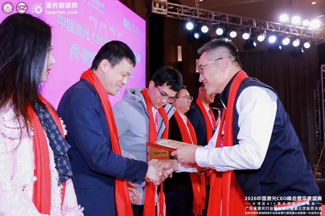 2026年1月11日,廣東省激光行業(yè)協(xié)會(huì)第三屆第三次會(huì)員大會(huì)、深圳市激光智能制造行業(yè)協(xié)會(huì)第三屆換屆大會(huì)暨第一次會(huì)員大會(huì)在深圳順利召開(kāi),大會(huì)同期舉行“協(xié)會(huì)之光?社會(huì)貢獻(xiàn)獎(jiǎng)”表彰儀式。