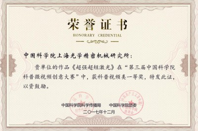 上海光機(jī)所原創(chuàng)科普微視頻“超強(qiáng)超短激光”榮獲中國科學(xué)院科普微視頻創(chuàng)意大賽一等獎(jiǎng)