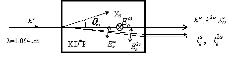 7-6、圖7-7則表示了在KDP晶體中實現(xiàn)第II類相位匹配過程中,基波、二次諧波光在晶體內(nèi)外的電場、波矢、光線、相位匹配角及走離角等的示意圖。