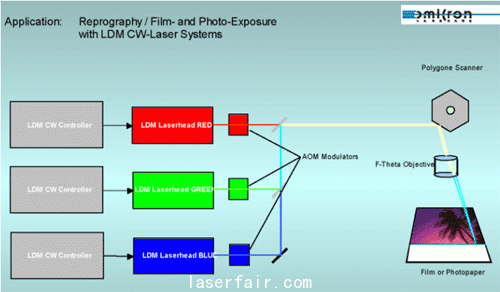 該激光模塊通過模擬調(diào)制,可以取代傳統(tǒng)氣體激光器必須依靠聲光 調(diào)制器來實現(xiàn)CD/DVD刻寫。 例如LDM405. 55. A350就是該應(yīng)用的理想光源。LDM激光器的調(diào)制范圍和精度完全可以和聲光調(diào)制器的性能相比。 另外,LDM405. xx. A350 所配備的調(diào)制輸入接口與聲光調(diào)制器接口兼容,因此如果從現(xiàn)有的傳統(tǒng)激光加聲光調(diào)制設(shè)備升級的話無需任何擴(kuò)展接口。