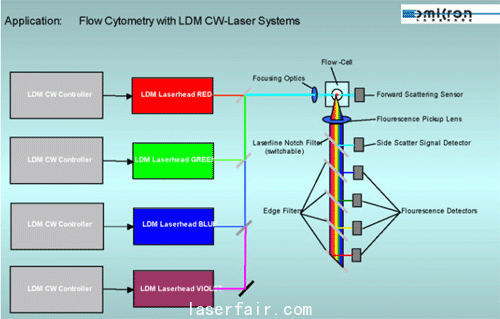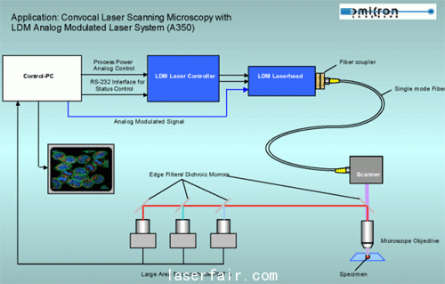 流式細(xì)胞儀flow cytometry, 激光掃描顯微鏡laser-scanning-microscopy,內(nèi)窺鏡endoscopy.   電腦印版Computer to Plate, DVD mastering, 全息數(shù)據(jù)存儲holographic data storage, 微印刷術(shù)micro-lithography, 復(fù)印reprography   拉曼光譜Raman spectroscopy, 基片檢查wafer inspection, 平面和材料分析surface and materials analysis.
