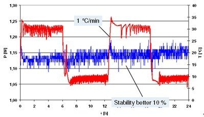 上圖中,紅線代表溫度的急劇變化(5℃~35),藍(lán)線代表平均功率波動情況,由圖中我們可以看出,不管外界環(huán)境溫度變化如何惡劣,激光器的功率變化也不超過10%。經(jīng)過了惡劣環(huán)境的洗禮,D2.fs的穩(wěn)定性和可靠性是毋庸質(zhì)疑的,而且該產(chǎn)品性價比極高,非常適合工業(yè)級應(yīng)用。