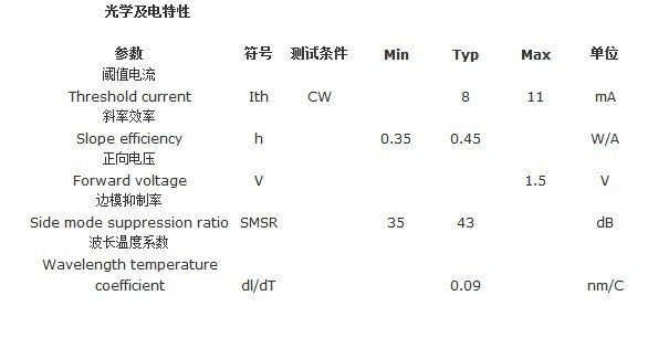 1310納米2.7 Gb/sec, 40 km無(wú)制冷應(yīng)用分布反饋激光器芯片