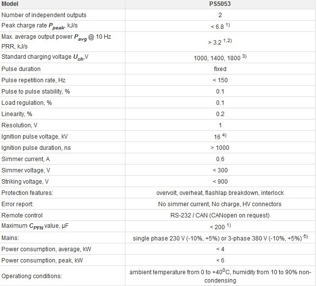 Flashlamp driver PS5053 is designed for flash-lamp pumped lasers and presents two channel device consisting of two capacitor charging, simmer/trigger and pulse forming modules and control circuit.