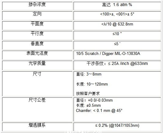 北京捷普提供的Nd:YLF 晶體的規(guī)格品質(zhì):