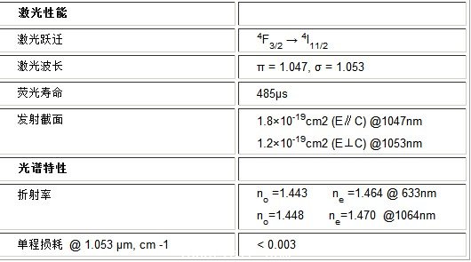 Nd:YLF晶體的基本性質(zhì)