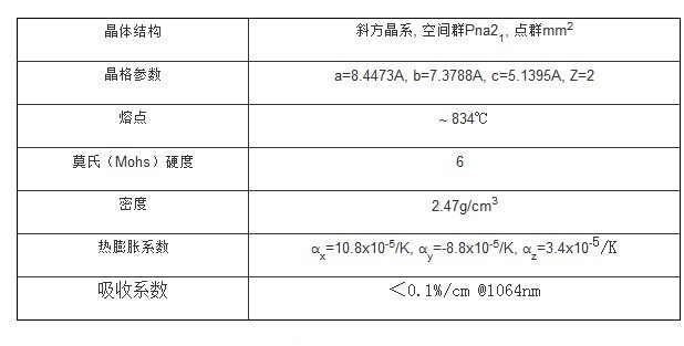 LBO晶體的物化特性:
