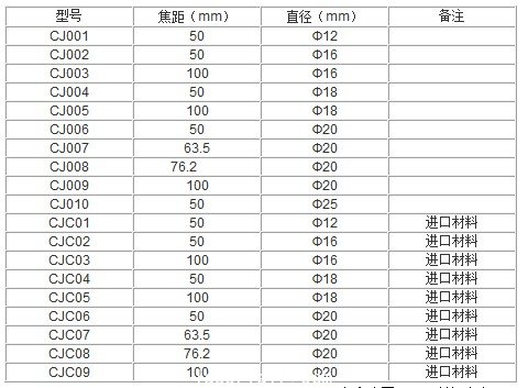 產(chǎn)品類別:光學(xué)鏡片 - 光學(xué)鏡片 產(chǎn)品名稱:聚焦鏡 產(chǎn)品編號:CJ001