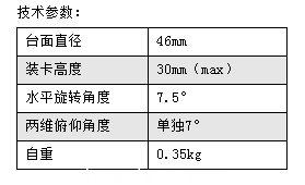 特點: 整體式設計,結構緊湊,可提供三維角度調(diào)整 調(diào)整螺桿為M6x0.25超細牙螺桿,彈簧復位 臺面方的彈性裝卡裝置可穩(wěn)固裝卡棱鏡等光學件,并且裝卸方便,彈性可調(diào)直至...