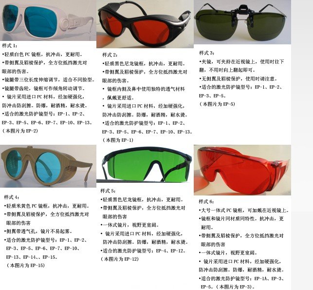 激光防護鏡樣式說明