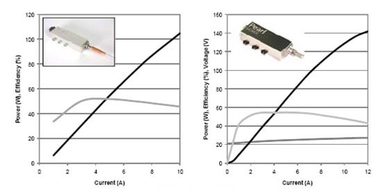 圖1.LI和效率曲線顯示出單一發(fā)射源二極管激光器在nLight公司的發(fā)展。這樣的一個裝置在10 W光功率以超過60%效率運行,FIT 率為1200(90%可信等級).