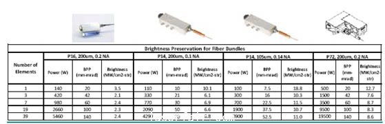 圖8 .根據(jù)功率現(xiàn)有的產(chǎn)品空間,BBP和亮度對光纖包捆激光模塊。選擇光束資源的靈活性和光纖數(shù)量包捆提供了高靈活性光纖耦合激光模塊。廣泛的產(chǎn)品都可以用這個方法解決。