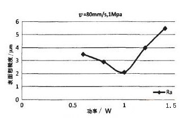 從圖8中可知,隨著功率的增加,表面粗糙度先緩慢降低,當(dāng)功率P=1kW時(shí),表面粗糙度最小Ra=2.01μm,但隨著功率的進(jìn)一步增大,粗糙度又隨之增大。粗糙度并不與功率成線性關(guān)系,而是存在一個(gè)最佳值。