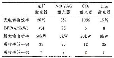 光纖激光器的優(yōu)點(diǎn)見表1。