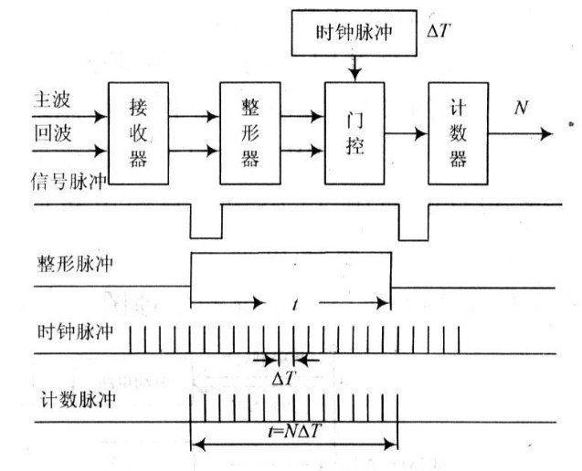 如果計(jì)數(shù)值為N,則t=N△T=N/f,從而可得L=ct/2=cN/(2f),其中,f為時(shí)鐘脈沖。
