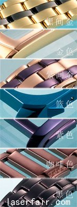 • 包括IP紫色、IP藍(lán)色、IP棕色、IP白等顏色。 依PVD工藝原理可鍍制成紫色、藍(lán)色、棕色、白色等,顏色深淺可依客戶色辦進(jìn)一步調(diào)試,其色彩絢麗,時(shí)尚標(biāo)志。