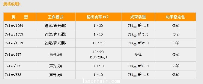一、Tolar/1064二極管泵浦Nd:YAG激光器