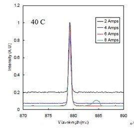 產(chǎn)品數(shù)據(jù)(波長鎖定在879nm,測試溫度從20C到45C)