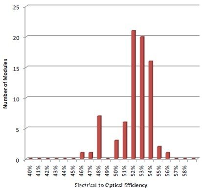 包括光柵和耦合輸出后整體模塊電光效率將近53%