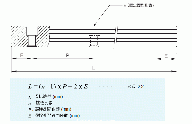 煙臺同升科技發(fā)展有限公司備有滑軌標準長度庫存供應客戶需求。假如客戶訂購非標準長度滑軌時,端面距離E的尺寸最好不要大於1/2P,防止因E的尺寸過大導致滑軌裝配后端部的不穩(wěn)定,而降低線性滑軌的精度,亦不可取用過小的E值(小於E)以避免螺栓孔破孔.#p#分頁標題#e#