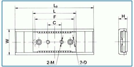 交叉滾子導(dǎo)軌[SGD型] 型號(hào) MODLE W H L0 L F C M D SGD13 13 4.5 40 22 20 7 M2 2.4
