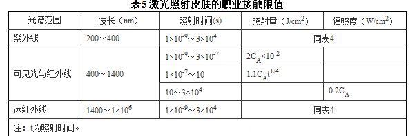 5 激光照射皮膚的職業(yè)接觸限值