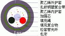 產(chǎn)品型號(hào): GYSTY53也叫(GYTY53) 光纖松套 纜芯填充油膏 金屬中心加強(qiáng) PE內(nèi)護(hù)套 雙面涂塑軋紋鋼帶粘結(jié)PE外護(hù)套