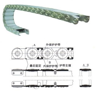 外形美觀. 護(hù)板結(jié)構(gòu)裝置已經(jīng)接受了15年以上的考驗.極穩(wěn)定,堅固的電纜保護(hù),可達(dá)1000mm寬,在任意一個部位都能打開拖鏈。