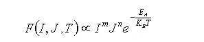 其中F為失效率,I為有源區(qū)的光功率密度,J為有源區(qū)的電流密度,EA為激活能,取值在0.4~0.7之間,KB為波爾茲曼常數(shù),T為有源區(qū)溫度。