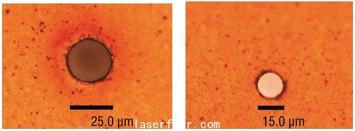 Spectra-Physics激光加工FPC通孔的細節(jié)特征,入口(左),出口(右)。