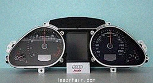 圖5:用有機(jī)玻璃為奧迪A6制造的儀表盤窗口,左圖沒有鍍膜,右圖鍍有防反射膜。