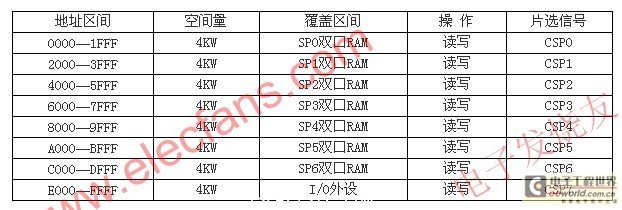 系統(tǒng)工作時首先啟動顯控微機和DSP處理機,顯控微機啟動圖形用戶界面應(yīng)用程序,接收用戶設(shè)置輸入,并檢測激光系統(tǒng)發(fā)射信號;DSP分機中各采集處理模塊的DSP處理器完成初始化工作后等待啟動命令。激光系統(tǒng)發(fā)射后觸發(fā)主控微機向DSP分機發(fā)送增益設(shè)置命令及啟動信號。DSP分機對來自接收陣的信號進行采集和計算,形成目標的方位—距離波形數(shù)據(jù)并存入數(shù)據(jù)輸出雙口RAM中,數(shù)據(jù)滿一幀后由顯控微機進行讀取、顯示,并可以文件形式進行存儲。接收機作為微機的一個外圍設(shè)備,是按照數(shù)據(jù)空間進行讀寫操作的,根據(jù)微機內(nèi)存資源配置情況,選擇了內(nèi)存的EXXXXH空間存儲14個波束的數(shù)據(jù)(字存取),相鄰兩個波束數(shù)據(jù)交錯排列,處于同一區(qū)間,區(qū)間分配情況如下表所示。