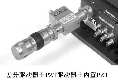 17 MAX 系列精密定位平臺(tái)中有幾款已經(jīng)裝有內(nèi)置,但通過增加外置的17DRV120 壓電驅(qū)動(dòng)器還可以進(jìn)一步提高壓電陶瓷驅(qū)動(dòng)器的行程。下圖 即為17 MAX 301維精密位移平臺(tái)(含內(nèi)置PZT驅(qū)動(dòng)器)+17DRV120壓電陶瓷驅(qū)動(dòng)器+17DRV002手動(dòng)差分驅(qū)動(dòng)器的組合,這樣既利用了差分驅(qū)動(dòng)器的較長(zhǎng)的行程,又得到了雙倍PZT行程。