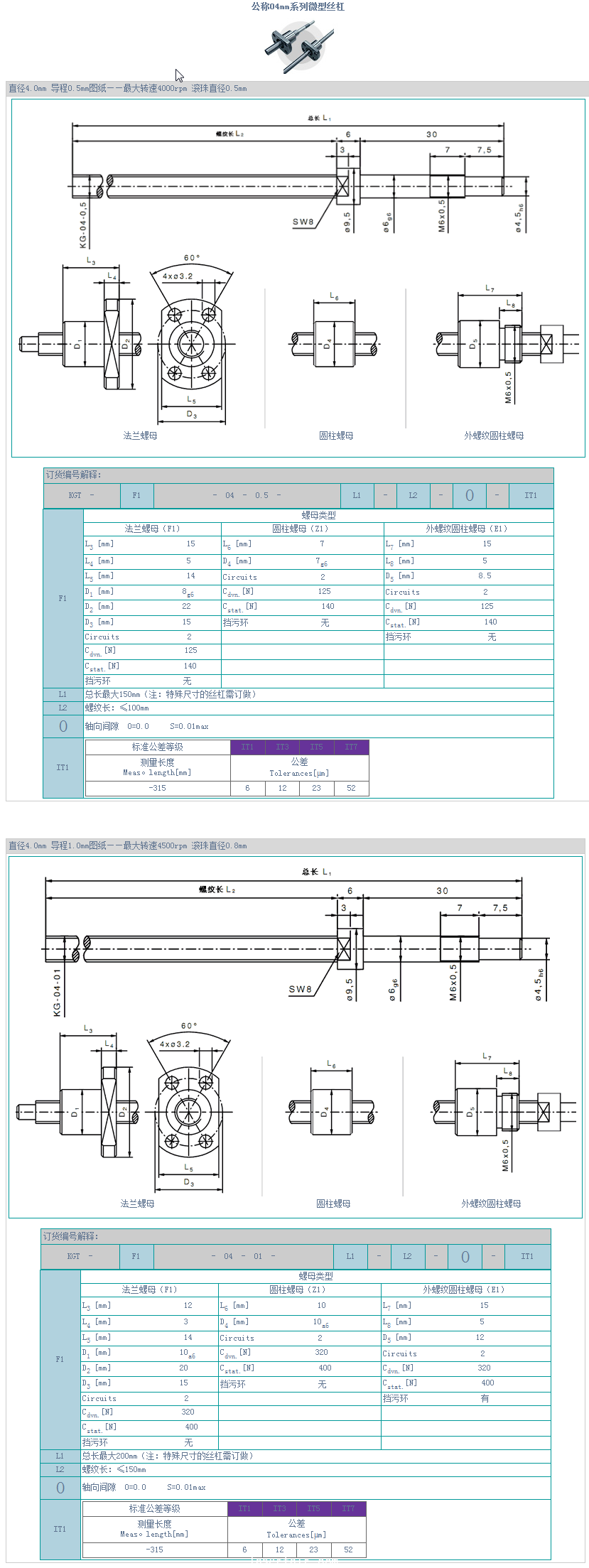 公稱04mm系列微型絲杠