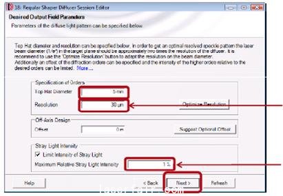 VirtualLAB輔助用戶客戶設計衍射光學元件用于產(chǎn)生擴散線(diffuse lines)或頂環(huán)(Top Hats).