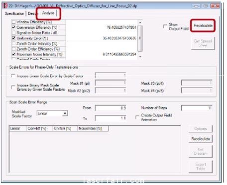 在Analysis Page可以計算擴散器產(chǎn)生輸出場的優(yōu)化函數(shù)結果