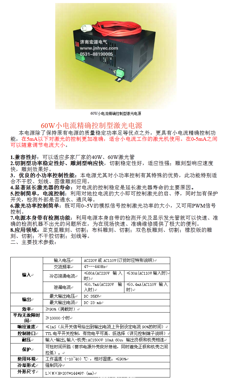 60w小電流精確控制型激光電源
