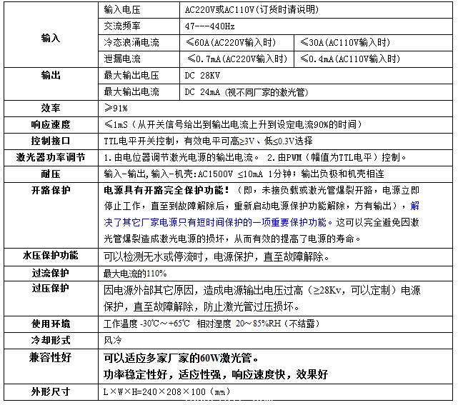 60W CO2激光電源