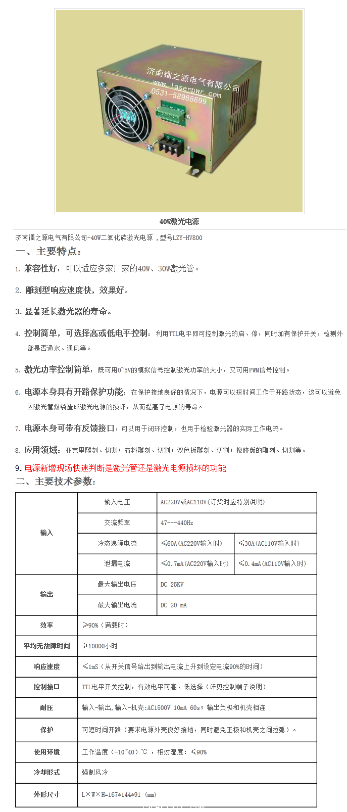 40W激光電源LZY-HV800
