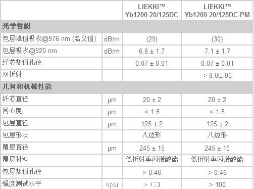 LIEKKI™ Yb1200-20/125 包括雙包層(Yb1200-20/125DC)和雙包層(Yb1200-20/125DC-PM)保偏光纖。