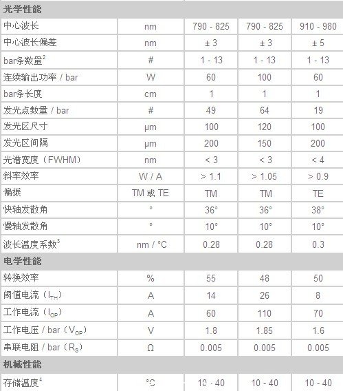 波長范圍從808 nm到大于2000 nm,最高可以把12個bar條封裝在一起。
