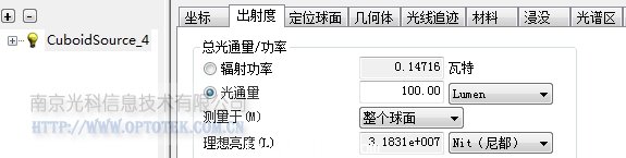 確認(rèn)一下光源發(fā)射的光通量,為100 lm。
