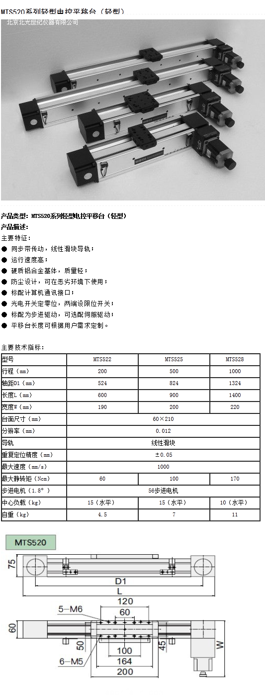 MTS520系列輕型電控平移臺(tái)(輕型)