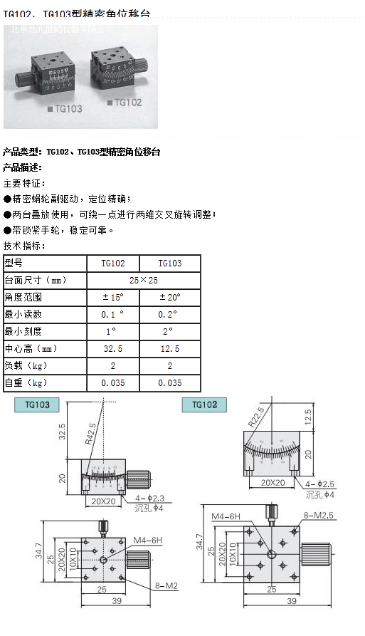 TG102、TG103型精密角位移臺