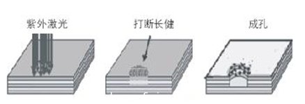UV激光具有將一個(gè)完整孔的工藝步驟減至1種單獨(dú)的激光工序的能力,特別是取消了對(duì)去鉆污的需求,甚至完全可以不用這一工序,尤其是對(duì)于脈沖圖形電鍍。不需要使用侵蝕性去鉆污工序,例如對(duì)CO2激光而言,孔的形狀的粗糙度、芯吸和桶形畸變得到了改善。