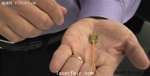 英特爾的Jason Ziller展示縮小版的光纖模組