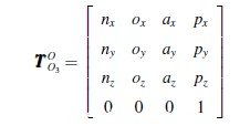 已知機(jī)器人末端執(zhí)行器相對于固定參考坐標(biāo)系O-XYZ 的位姿矩陣: