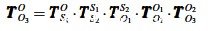 根據(jù)求解得到的α、β 和L2,將Ts2O TO1O求解出來.得到S2和O1在固定參考坐標系O-XYZ 中的坐標,則得到下式: