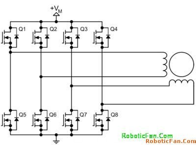 雙極性步進電機的驅(qū)動電路則如圖2所示,它會使用八顆晶體管來驅(qū)動兩組相位。雙極性驅(qū)動電路可以同時驅(qū)動四線式或六線式步進電機,雖然四線式電機只能使用雙極性驅(qū)動電路,它卻能大幅降低量產(chǎn)型應(yīng)用的成本。雙極性步進電機驅(qū)動電路的晶體管數(shù)目是單極性驅(qū)動電路的兩倍,其中四顆下端晶體管通常是由微控制器直接驅(qū)動,上端晶體管則需要成本較高的上端驅(qū)動電路。雙極性驅(qū)動電路的晶體管只需承受電機電壓,所以它不像單極性驅(qū)動電路一樣需要箝位電路。
