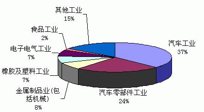 圖1: 2005年美洲地區(qū)各主要行業(yè)對工業(yè)機器人需求比例分布圖